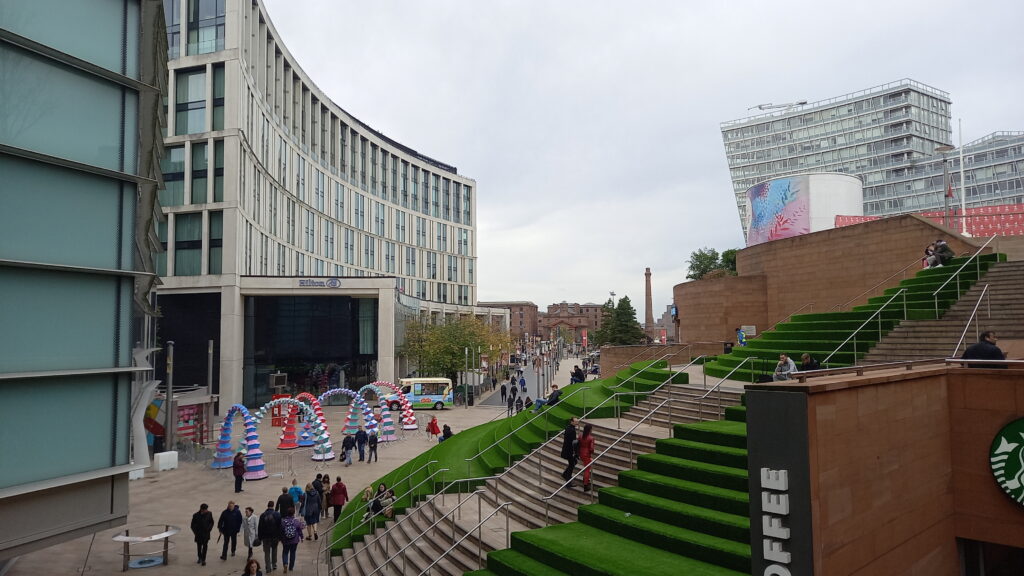 After arriving at Liverpool Central my first area to visit was the Pier Head where the Liver Building is located near the River Mersey. Here you can find some boats and the Museum of Liverpool. Once I spent some time walking around the area I then headed back inland to walk around the streets of the city centre. Since I hadn’t been here for a few years I had no sense of direction whatsoever so the signposts were a lifesaver as I had no idea where to go to find anything.